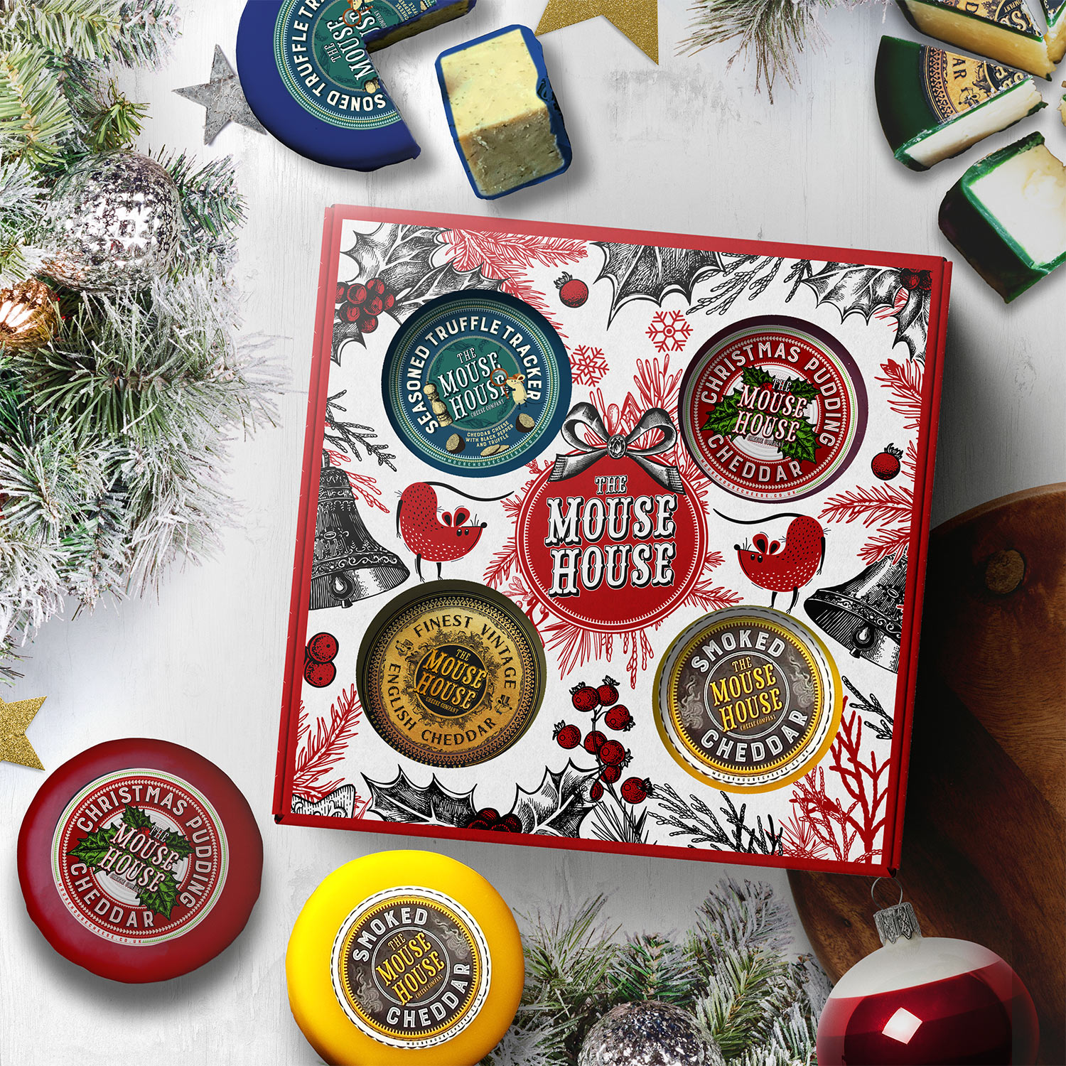 This gift box includes our 4 best festive cheddars: Christmas Pudding; a creamy rich cheddar infused with traditional spices and brandy to create the perfect blend of Christmas in a waxed truckle. Smoked; a creamy cheddar, traditionally smoked over applewood chips in a Smokehouse. Vintage; containing calcium crystals, the strength of the cheddar is the perfect amount, with a creamy but delicate texture. Seasoned Truffle Tracker; an exclusive cheddar on Postacheese, offering a balanced mix of earthy truffle and a kick from the Black Pepper.
